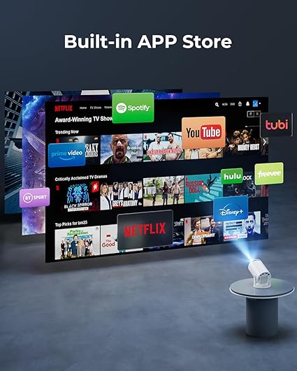 Amazon : $34.99 ($109.99)    CLOKOWE Mini Projector with WiFi and Bluetooth – [Built-in Apps] Smart Portable Projector with 180° Rotation, Auto Keystone, Support 1080P, Compatible with HDMI/USB/TV Stick/Smartphone/Laptop
