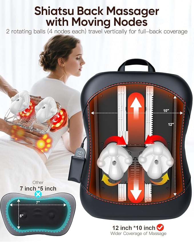Amazon : $35.49 ($99.99)  Shiatsu Back Massager with Heat : Up & Down Rolling Massage– Kneading Massager for Back Pain Relief Deep Tissue – Adjustable Intensity and Heat for Office Workers, Seniors, and Daily Comfort