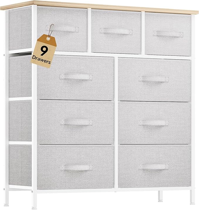 - 9 Drawer Dresser, Light Gray Fabric Storage Tower, is for $37.03 ($59.99) at Amazon.com
