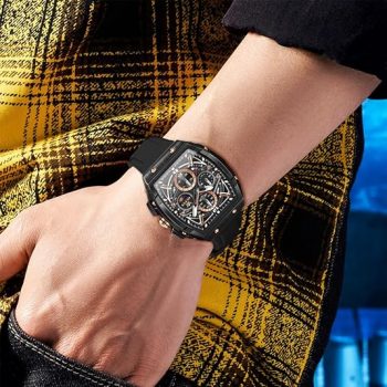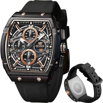 Amazon : $39.82 ($368.00)  OLEVS Men Watches Business Dress Chronograph Big Square Quartz Analog Male Watch Silicone Strap Waterproof Date Gift Mens Wrsit Watch Silver