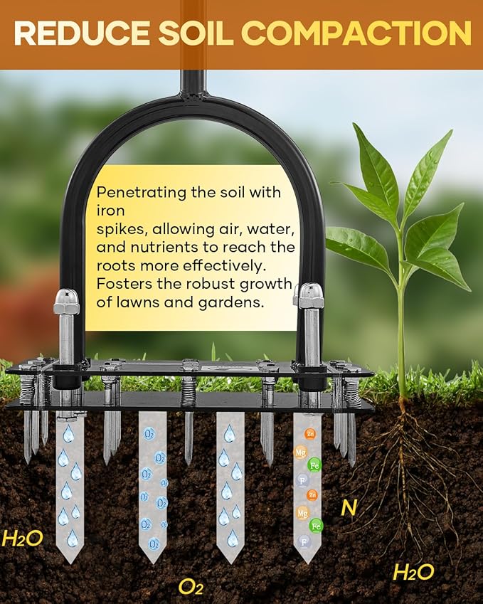 Amazon : $39.90 ($49.99)  Saker Lawn Aerator Tool, Lawn Aerator with 15 Iron Spikes, Automatic Leaf and Dirt Cleaning with Spring-Loaded Design, Metal Manual Aerator for Loosening Soil Aerating Patio, Yard, Garden Black