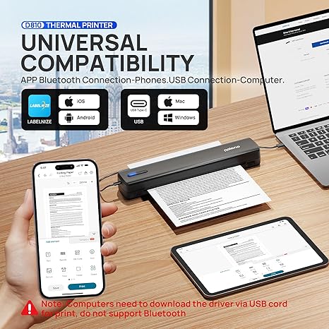 Amazon : $39.99 ($94.99)  POLONO Portable Printer, D810 Inkless Bluetooth Thermal Printer Wireless for Travel, Compatible with iOS, Android, Laptop, Supports 8.5