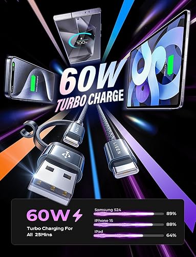 Amazon :$4.99 ($9.99)LISEN USBC to USBC Cable [2Pack, 3.3ft] 60W Fast Charging USB A to USB C Cable for iPhone 16 Carplay Cable Braided Type C Charger Cable for iPad Pro Samsung S24 Ultra Android MacBook