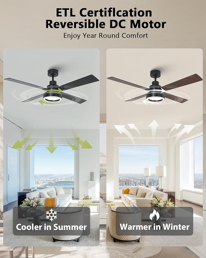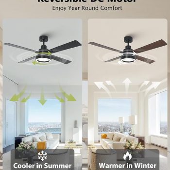 Amazon :$41.59 ($79.99)52 Inch Black Ceiling Fan with Light and Remote, Indoor Outdoor Modern Black Ceiling Fan, 3CCT, Reversible Motor, Dual-Sided Blades Ceiling Fans for Bedroom Living Room Patio – Standard Version