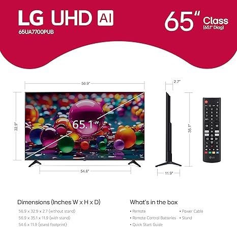Amazon : $416.99 ($499.00) LG 65UA7700P 65 inch Class UA77 Series LED AI 4K Smart webOS TV (2025)