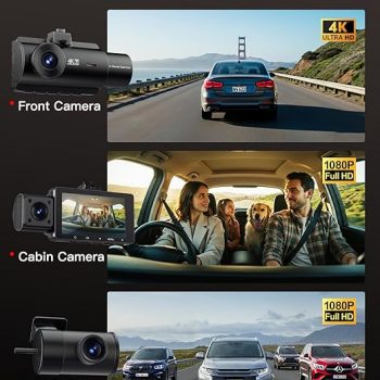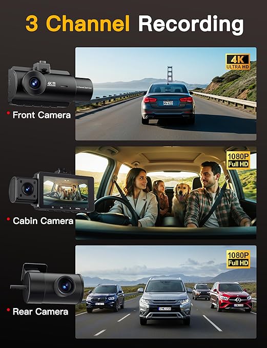 Amazon : $47.59 ($149.99)   QCONTROL® 4K 5G WiFi 3 Channel Dash Cam Front and Rear Inside, 4K+1080P+1080P Dash Camera for Cars, GPS Dashcam, Car Camera with 3-Inch Screen, IR Night Vision, 24Hr Parking Mode, G-Sensor, 64GB Card