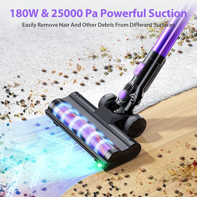Amazon : $49.99 ($199.99) Cordless Vacuum Cleaner, Up to 50 Mins Runtime Rechargeable Stick Vacuum, 25000pa 180W Lightweight Vacuum with HEPA Filter, 6In1 Vacuum Cleaners for Home Hardwood Floor, Car and Pet Hair