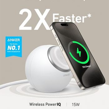 Amazon : $49.99 ($59.99) Anker MagGo Magnetic Charging Station, Qi2 Certified 15W Ultra-Fast MagSafe Wireless Charger for iPhone 15/14/13, 8-in-1 Power Strip with 3 AC and 4 USB Desktop Charger for MacBook and More (White)