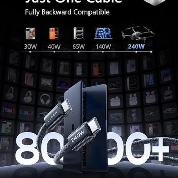 Amazon: $5.60 ($10.99) 2pk USB C to USB C Cable, 240W C to C Cable Fast Charging 6.6ft