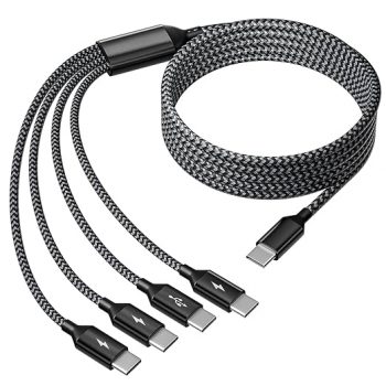 Amazon : $5.87 ($9.79)  USB C Splitter Multi Charging Cable, Dual Type C Charger Cord,4 in 1 Multiple Nylon Braided Cable with 4 Type-C Connectors Compatible with iPhone 15 Pro Max/Samsung Galaxy/Tablets/Google-1Pack 5FT.