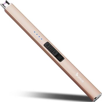 Amazon : $5.99 ($16.99)   SUPRUS Electric Lighter Arc Windproof Flameless USB Lighter Rechargeable Lighter with Safety Lock for Candle BBQ Camping (champagne Gold)