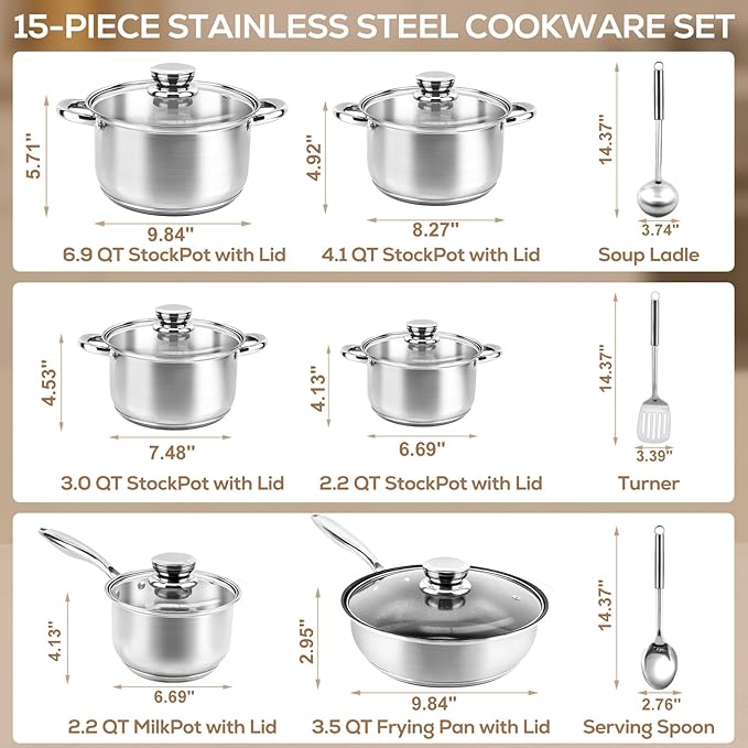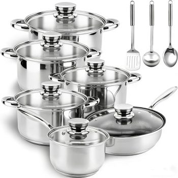 - Stainless Steel Cookware Set – 15 Pieces Pots and Pans, is for $59.99 ($99.99) at Amazon.com