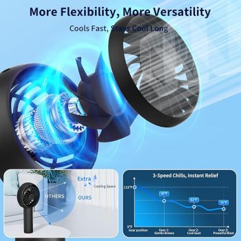 Amazon : $6.79 ($9.99)  Portable Handheld Fan-90°Adjustable Wind Direction, 3 Speed Settings, Quiet USB Rechargeable Mini Fan, Summer Essential for Stylish Women/Men/Pets, Indoor & Outdoor Use