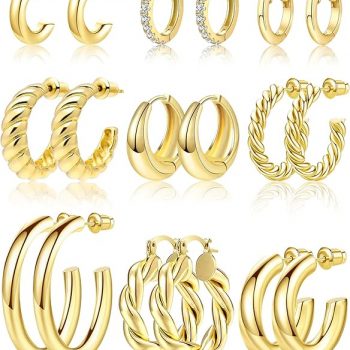 Amazon: $6.99 ($15.99) Valentines Day Gifts for Her – Adoyi 9 Pairs Gold Hoop Earrings Set