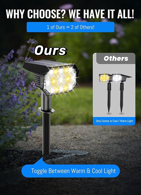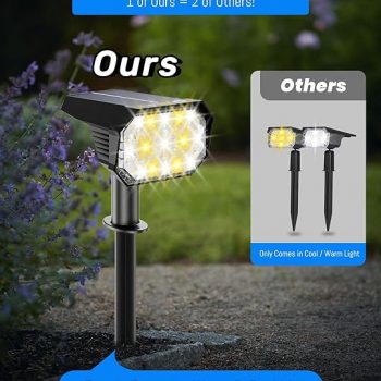 Amazon : $7.97 ($18.99) Brightown Solar Lights Outdoor Waterproof IP67, [Cool & Warm Light 2-in-1] Solar Spot Lights Outdoor, 2 Colors 3 Brightness Levels LED Outdoor Solar Lights for Yard Pathway Garden House, 2 Pack
