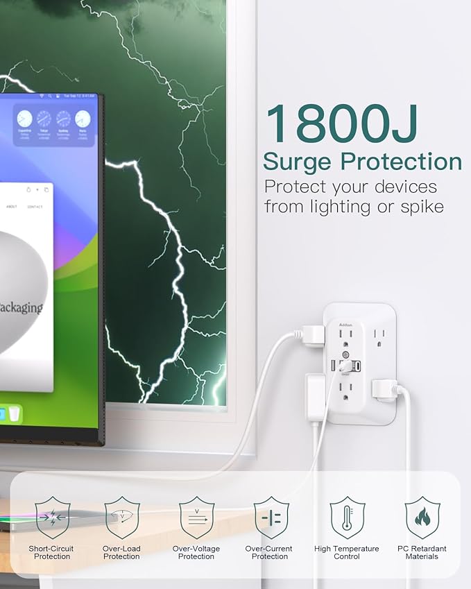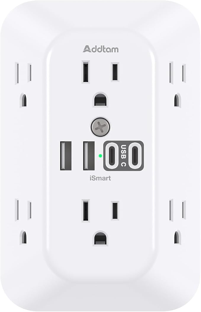 Amazon: $7.98 ($9.99) Surge Protector Outlet Extender, 6-Outlet Splitter w/ 4 USB Wall Charger
