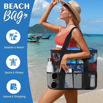 Amazon: $7.99 ($15.98) Beach Bag – Mesh Beach Bag Large 8 Pockets, Beach Tote Bag