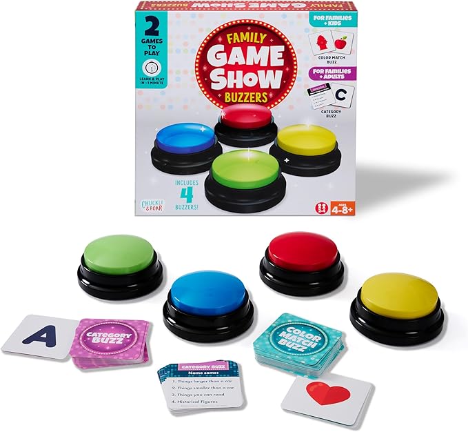 Amazon : $7.99 ($19.99) Chuckle & Roar – Family Game Show Buzzers – Action Packed Family Game Night Play – Includes Cateogry and Match Cards – Ages 4 and Up