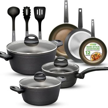 - Metallic Ridge Line Nonstick Cooking Kitchen Cookware Pots, is for $71.49 ($142.99) at Amazon.com