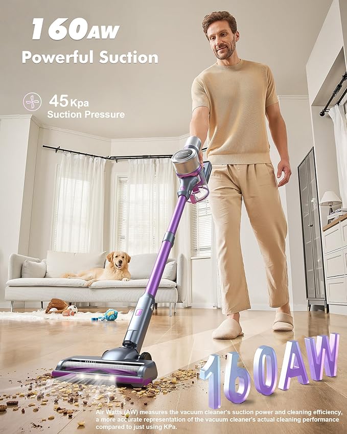 Amazon : $78.99 ($169.98) Cordless Vacuum Cleaner, 45Kpa Powerful Suction, 60 Mins Max Runtime, 4000mAh Large Batteries, Anti Hair Wrap Stick Vacuum, Vacuum Cleaners for Home, Pet Hair, Hard Floors and Carpets, Cars