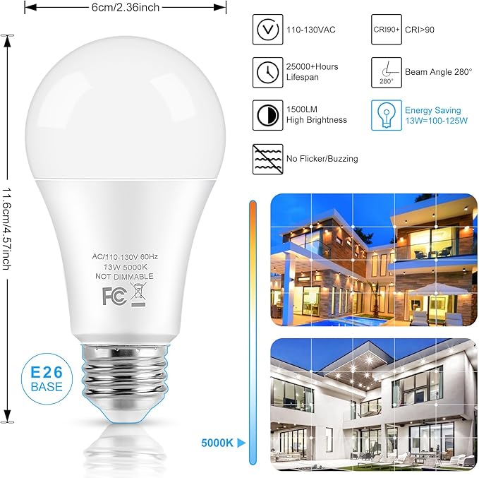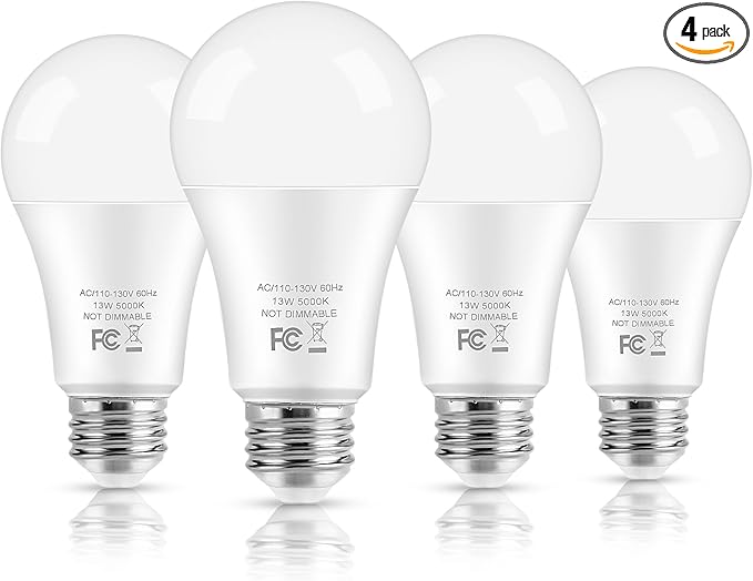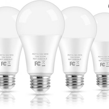 Amazon : $8.99 ($9.99) LED Light Bulbs, 100 Watt Equivalent A19, 13W 5000K Daylight White 1500 Lumens Non-Dimmable Bright E26 Edison Medium Screw Bulbs for Home Bedroom Kitchen Living Room Office Lamp, 4-Pack