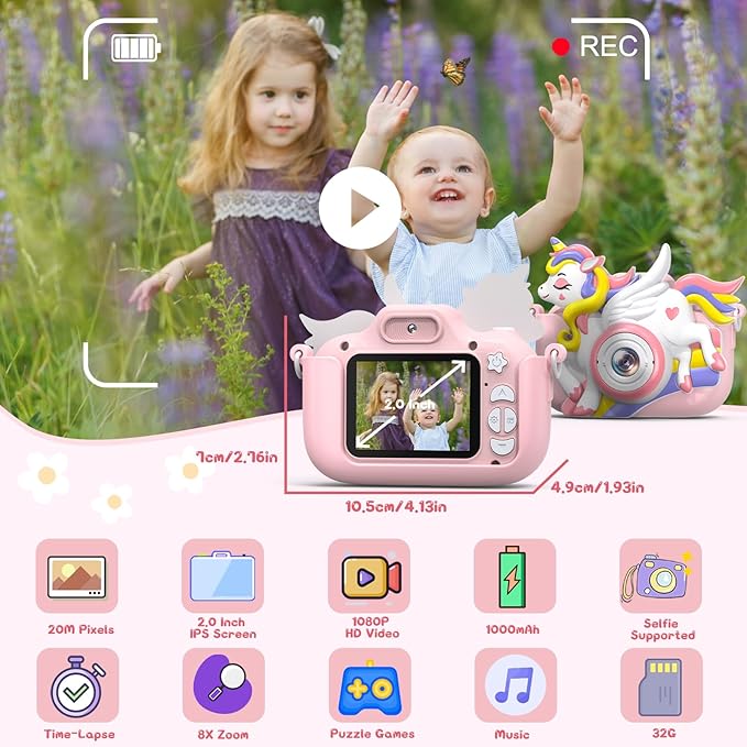 Amazon $9.00 ($26.99) Hangrui Kids Camera – Toddler Camera for Creative Exploration Ideal Kids Digital Camera, Birthday Gift for 3-12 Year Old Girls Boys, Fun Toy for Ages 3-12 with 32GB Card