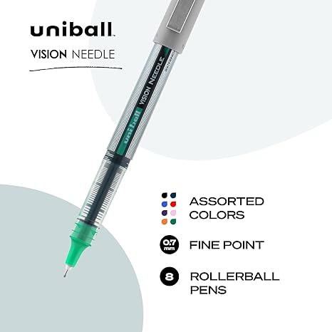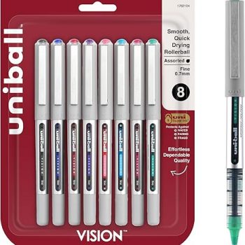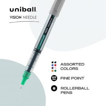 - uniball™ Vision Rollerball Pens, Fine Point (0.7mm), Assorted Colors, 8 Pack : $9.38 ($21.89) at Amazon.com
