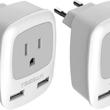 Amazon : $9.99 ($21.24)  European Travel Plug Adapter 2 Pack, TESSAN International Power Outlet Adaptor with 2 USB, Type C Charger from USA to Most of Europe EU Spain Iceland Germany France Italy Israel