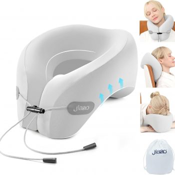 Amazon : $9.99 ($27.99)  jiaao Travel Neck Pillow – Pain Relief & Comfortable Sleep on Cars, Trains & Planes – Memory Foam Advanced Neck Support for Long Flights, Eye Mask, Earplugs & Storage Bag