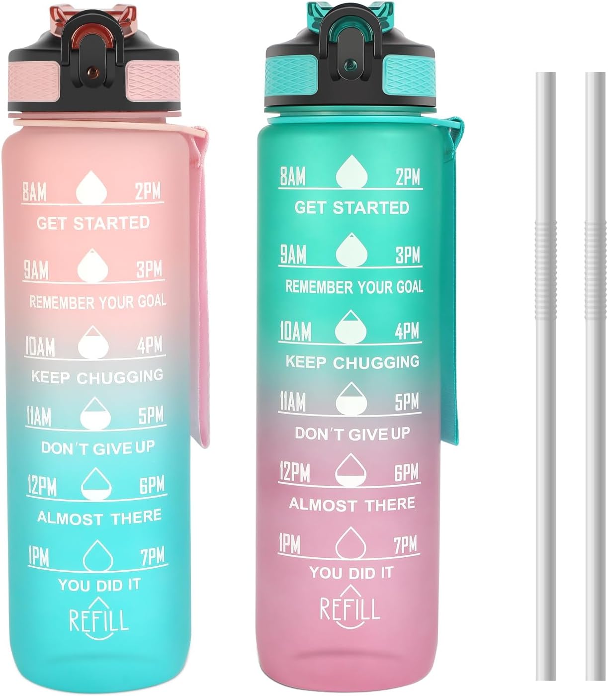 Amazon: $9.99 ($54.99) 2 Pack 32oz Sports Water Bottle, Motivational Sports Water Bottle with Times Marker