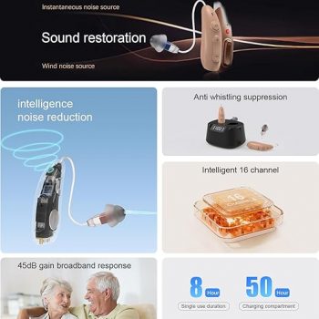 Amazon : $98.45 ($179.00)  Rechargeable Hearing Amplifier with 45dB Gain, 8Hrs Runtime, Includes Digital Display Charging Station, for Mild to Moderate Hearing Loss