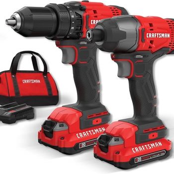 - – CRAFTSMAN V20 MAX Cordless Drill and Impact Driver, Power Tool Combo Kit with 2 Batteries and Charger (CMCK200C2AM) : $99.00 ($149.00) at Amazon.com