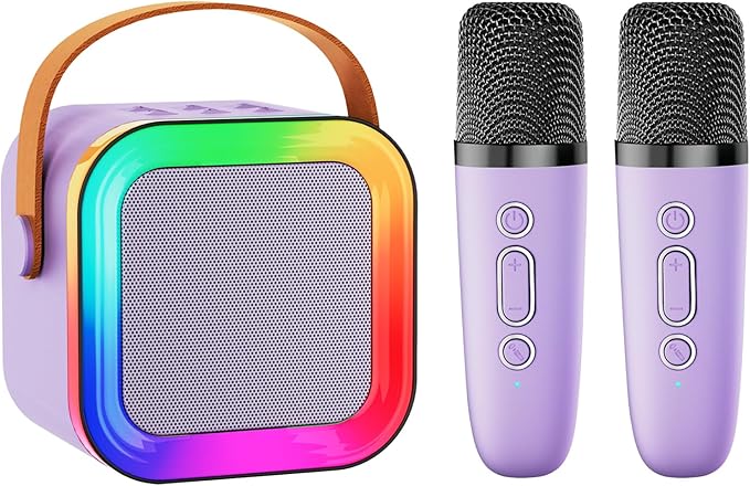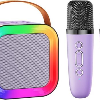 Amazon:$10.19 ($16.99)Mini Karaoke Machine Speaker for Kids Adults,Portable Bluetooth with 1-2 Wireless Microphones,Christmas Birthday Gifts Toys Girls Boys Ages 4, 5, 6,7, 8,9,10,11,12+ Years Old Toddler (Purple – 2 Mic)