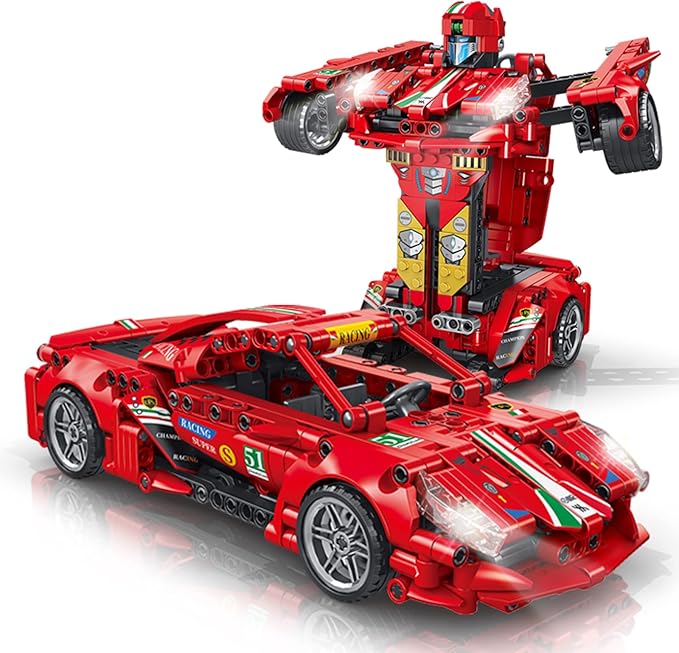Amazon:$10.99 ($21.99)Racing Cars Building Blocks Kit,2-in-1 Building Bricks Robot Building Toys, Sports Car Model Gifts for Kid Age 6+ and Adult (red)