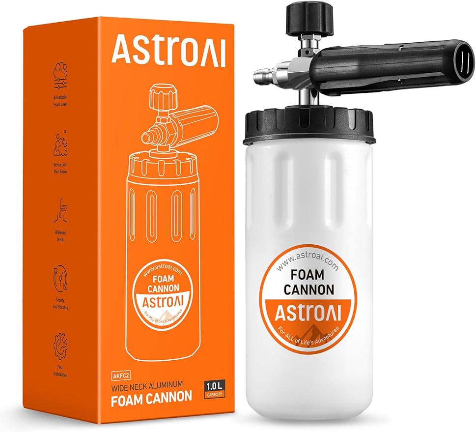 Amazon:$11.96 ($19.99)AstroAI Foam Cannon for Pressure Washer, Car Wash Foam, Wide Neck Foam Sprayer with 1/4” Quick Connector Plug, Pressure Washer Accessories, 1 Liter