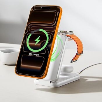 Amazon:$11.99 ($29.98)iVANKY 15W Fast 3 in 1 Foldable Wireless Charging Station Made of Air-Pods Materials for Apple Devices Charge for iPhone 17 16 15 Pro Max Air/iWatch/AirPods, Travel Charge for MagSafe Magnetic Stand