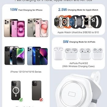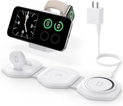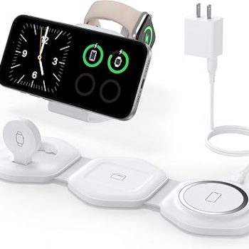 Amazon:$11.99 ($42.98)3 in 1 Charging Station for Apple Devices – Foldable Magnetic Wireless Travel Charger for Multiple Devices – Travel Charging Pad for MagSafe iPhone 16 15 14 13 12 Pro Max Plus iWatch S10 & AirPod
