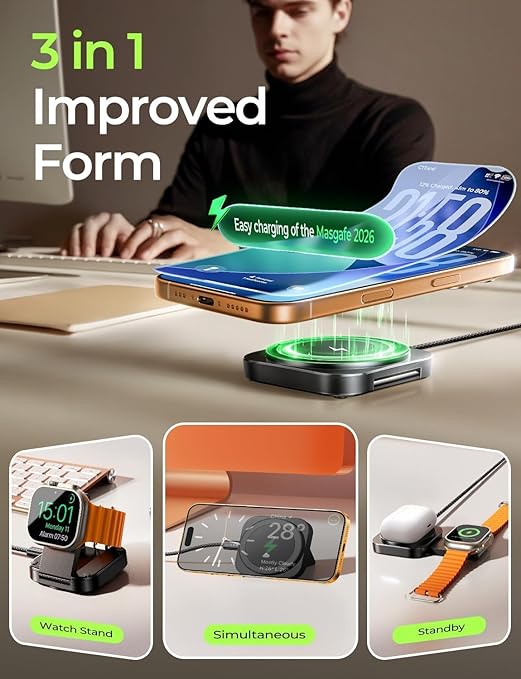 Amazon:$12.99 ($19.99)LISEN for MagSafe Charger Stand for iPhone Magnetic Apple Watch Airpods Charging, Airplane Gadgets Magsafe Kickstand for iPhone Wireless Charger Gifts for Women Men Travel Essentials