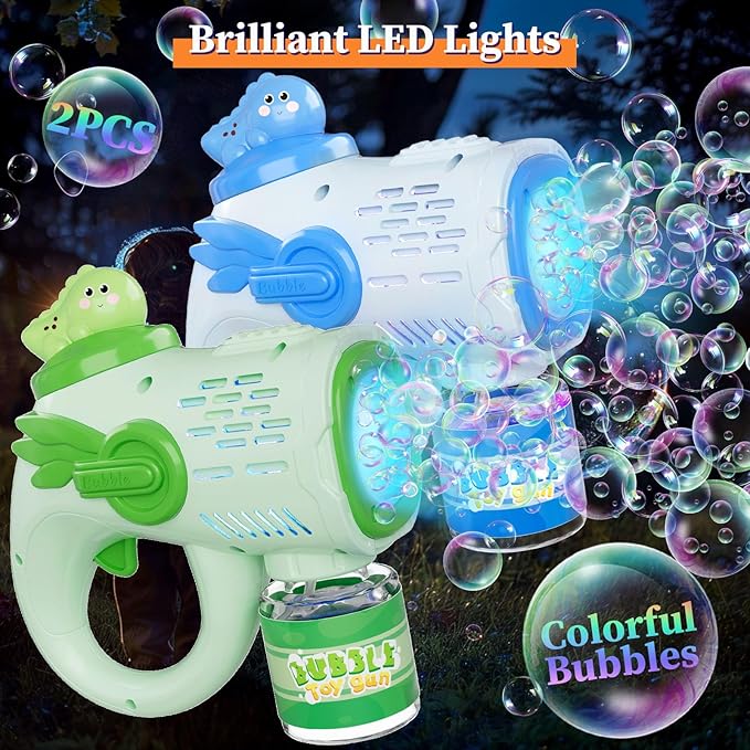 Amazon:$12.99 ($24.99)Easter Dinosaur Bubble Gun 2-Pack – Light-Up Dino Bubble Machine Toys for Ages 3+ Kids with 10 Bubble Solution, 3-8 Year Old Boys Girls Easter Gifts Birthday Party Favors Bubbles for Kids Toddler Toys