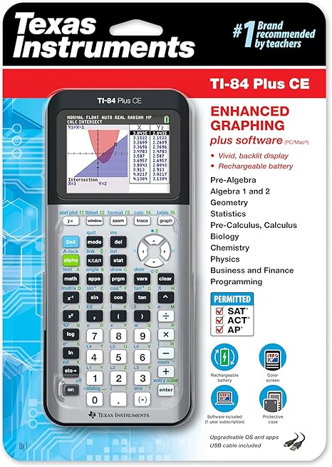 Amazon:$123.19 ($150.00)Texas Instruments Graphing Calculator TI-84 Plus CE, Gray, Galaxy Gray (Metallic), Rechargeable, High-resolution Color Display, MathPrint, Preloaded Apps
