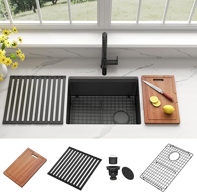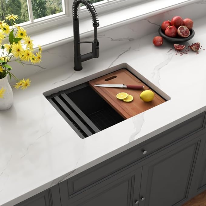 Amazon:$129.99 ($259.99)Black Undermount Kitchen Sink, Single Bowl Stainless Steel Kitchen Bar Sink, 10 Inch Depth Multifunctional Workstation Handmade Kitchen Sinks with Accessories (23 * 18 inch)