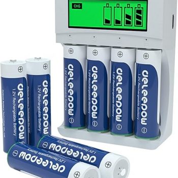 Amazon:$13.47 ($22.46)Deleepow AA Rechargeable Batteries Ni-MH 3300mAh 1200 Cycles (8Pcs) with LCD Smart Battery Charger for Rechargeable AA AAA Batteries