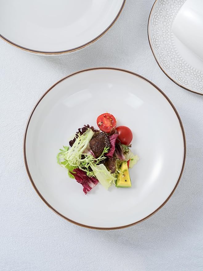 • famiware 8.7" Pasta Bowls Set, Salad Bowls Set of 4, 34oz Ceramic Bowls for Serving Dinner, Microwave and Dishwasher Safe, White Stripe:$14.99(29.99)at Amazon.com