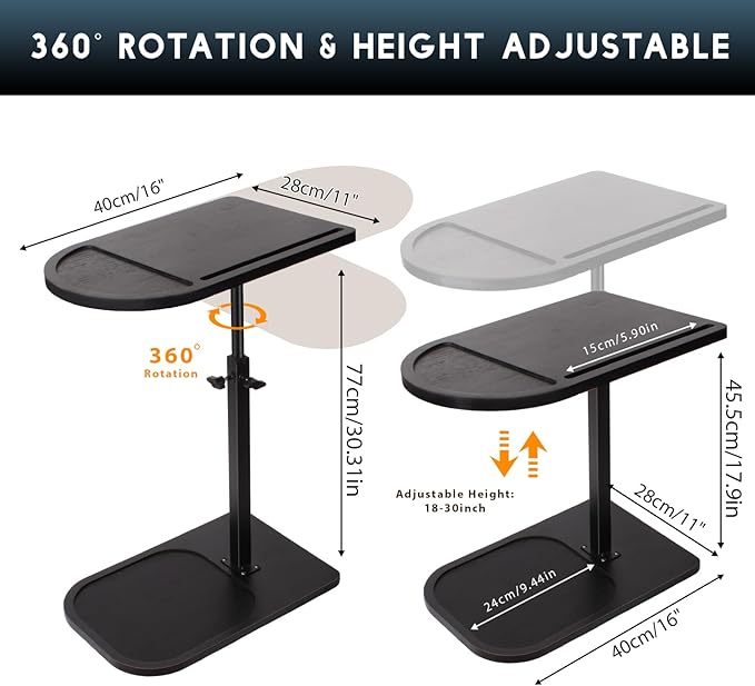 Amazon:$16.33 ($34.39)Side Table Sofa Tray for Couch – Adjustable/360° Swivel TV Tray Tables with Phone & Tablet Slot, Small Spaces Snack Trays C-Shaped End Table for Bed, Living Room, Office (Black)