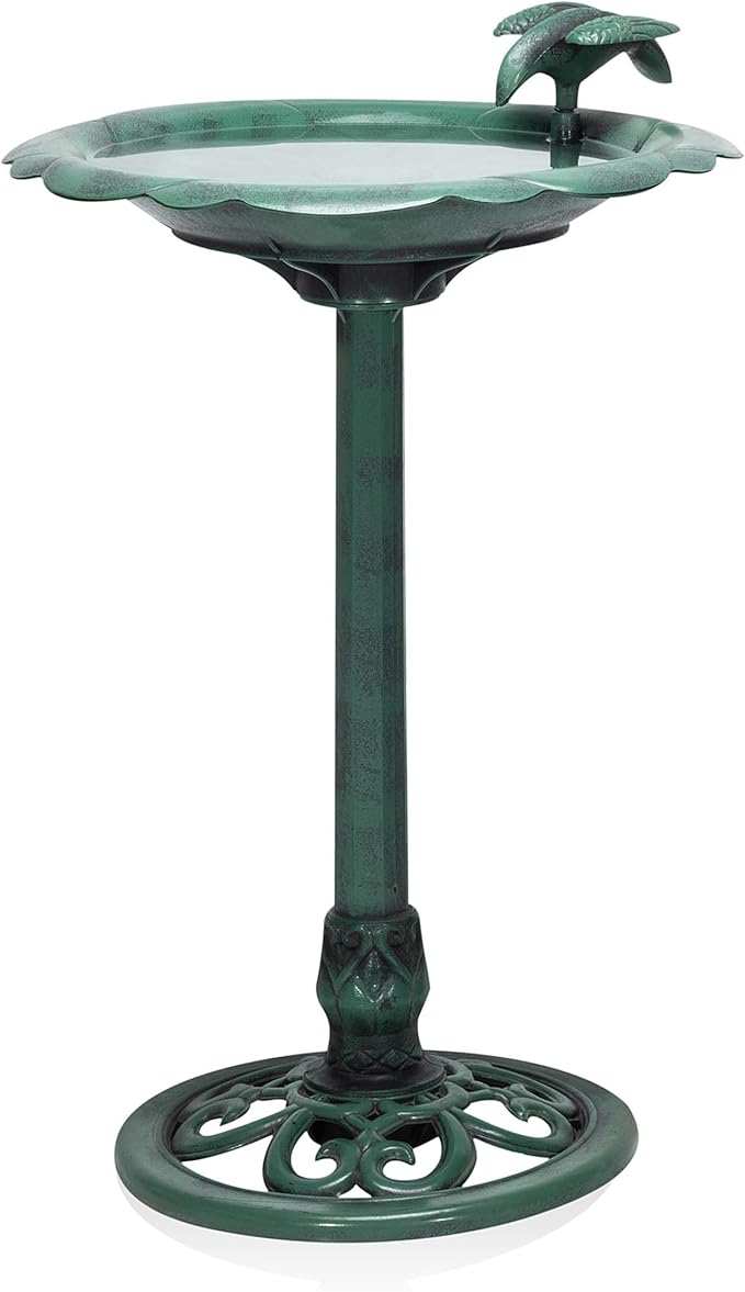 - Alpine Corporation 31” Tall Outdoor Antique Flower Birdbath with Bird Decoration Yard Statue :$17.20 ($44.99)at Amazon.com