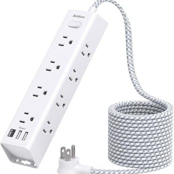Amazon:$17.99 ($27.99)Surge Protector Power Strip – 10 FT Extension Cord, Power Strip with 12 Widely AC Outlet 3 USB, Flat Plug, Wall Mount Overload Protection, 1050J, Desk Charging Station for Home Office, ETL Listed