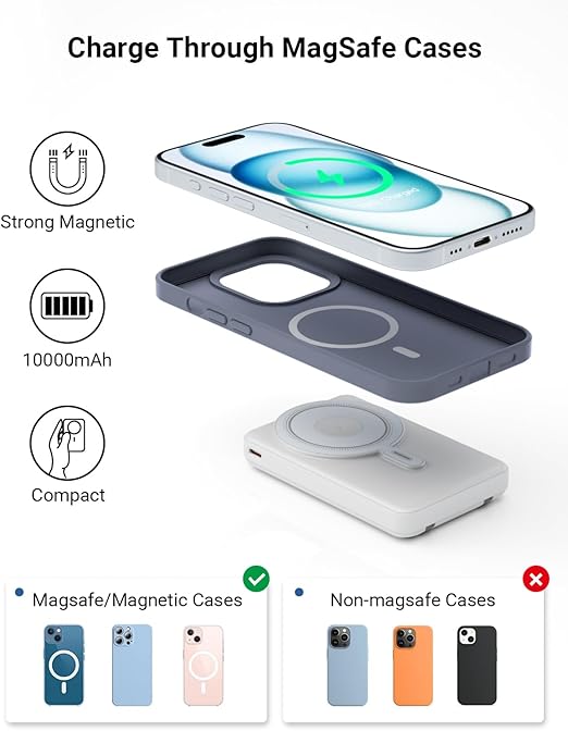Amazon:$17.99 ($39.99)for Magsafe Power Bank 10000mAh, Magnetic Wireless Battery Pack with Stand and Cables, PD 20W Fast Charging Portable Charger for iPhone 16 Pro Max/15/14/13/12 Mini, Apple Watch