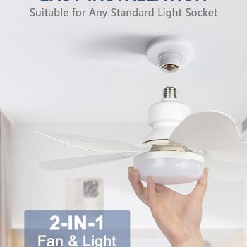 Amazon:$18.00 ($26.99)DGO Socket Fan Light Ceiling Fans with Lights and Remote Control,Dimmable LED Ceiling Fan with Extenders,2000 Lumens Light Bulb Screw in Silent Ceiling Fan for Room,Bedroom,Living Room,Garage,Kitchen