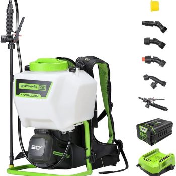 Amazon:$189.98 ($269.99)Greenworks 80V Backpack Sprayer 4 Gallon,Battery Powered Backpack Sprayer Kit for Weeding, Spraying, Pest Control, 2Ah Battery and Charger Included, Green, 80V Sprayer Kit (2.0Ah)