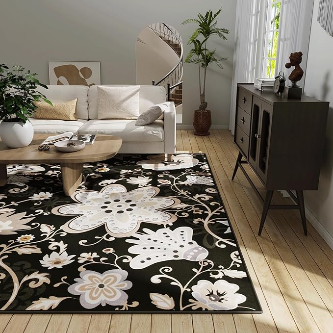 Amazon:$19.99 ($39.99)Living Room Rug,Black and Gold,Area Rugs 5×7,Colorful Rugs for Bedroom Kitchen Dorm,Decorative Rugs for Kids Girls Room Decor
